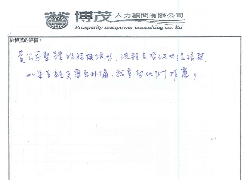 貴公司整體服務很好,流程及資訊也很清楚,如果有親友需要外傭,我會向他們推薦!